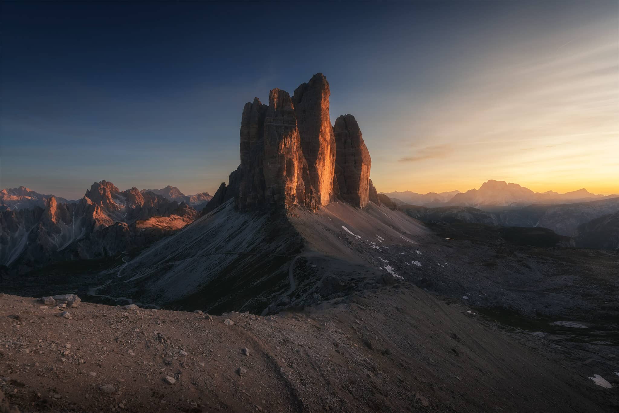 Today we’ll return back to the Tre Cime – but not to shot those peaks (at least, that’s not our goal for the day); we’ll actually walk on a different trail, a 30 minutes walk to an outlook over the impressive Cadini di Misurina – some of the most rugged peaks you will see in the whole workshop.