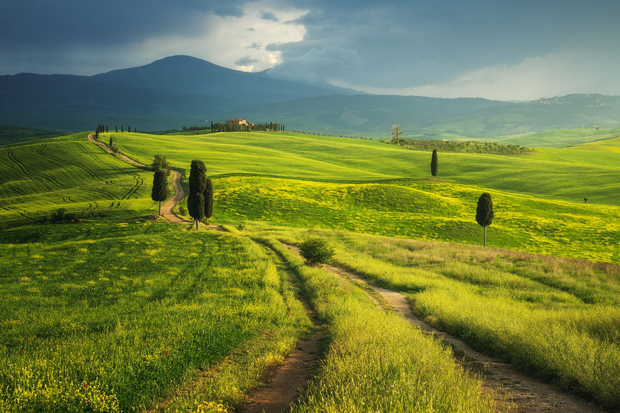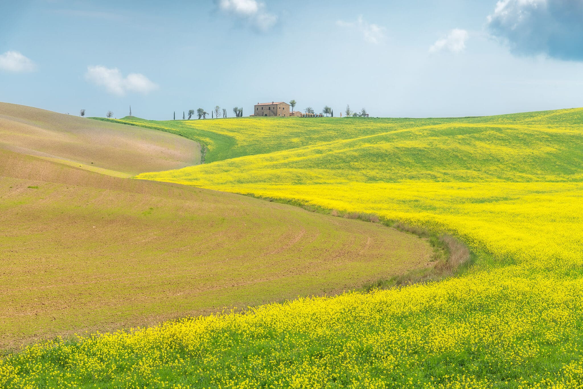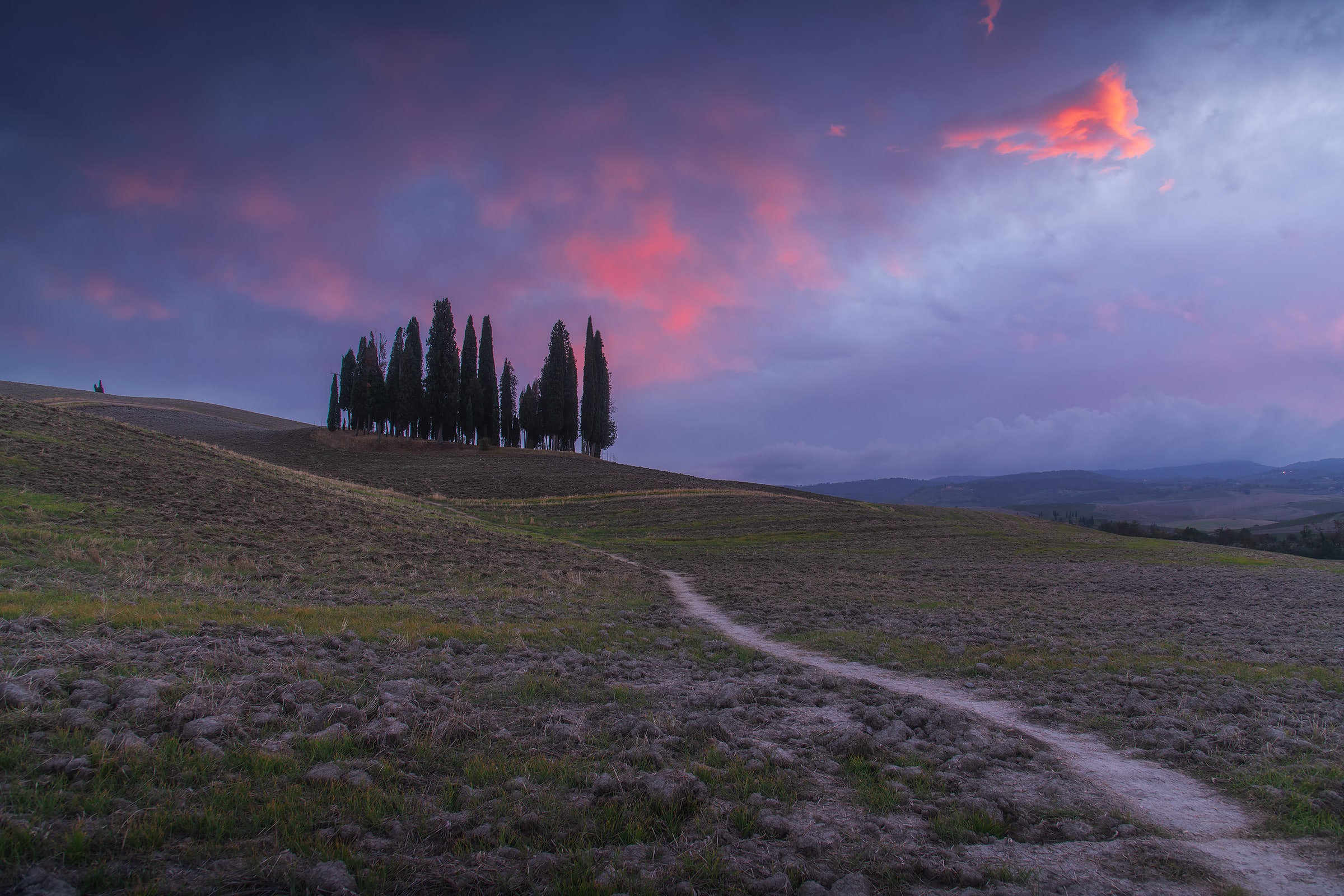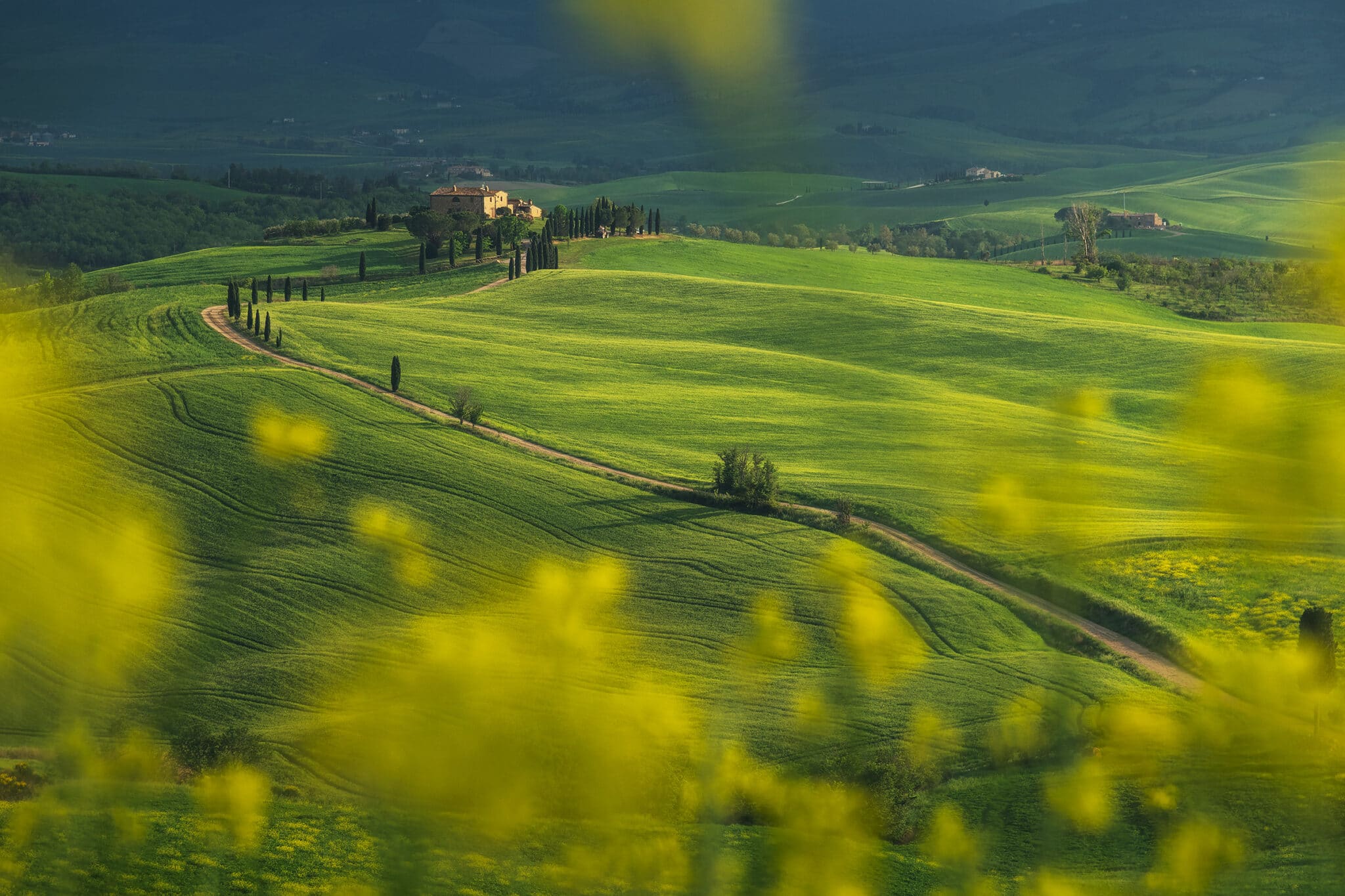 An early wake up call waits for us: we will go out when the twilight glow is just starting to appear, so that by the blue hour we will already be set up and ready to shoot! During our first sunrise session we’ll visit the iconic “Podere Belvedere”, one of the places that better represents the landscape of Tuscany: a country house, endless rolling hills and cypress trees all over the scene.