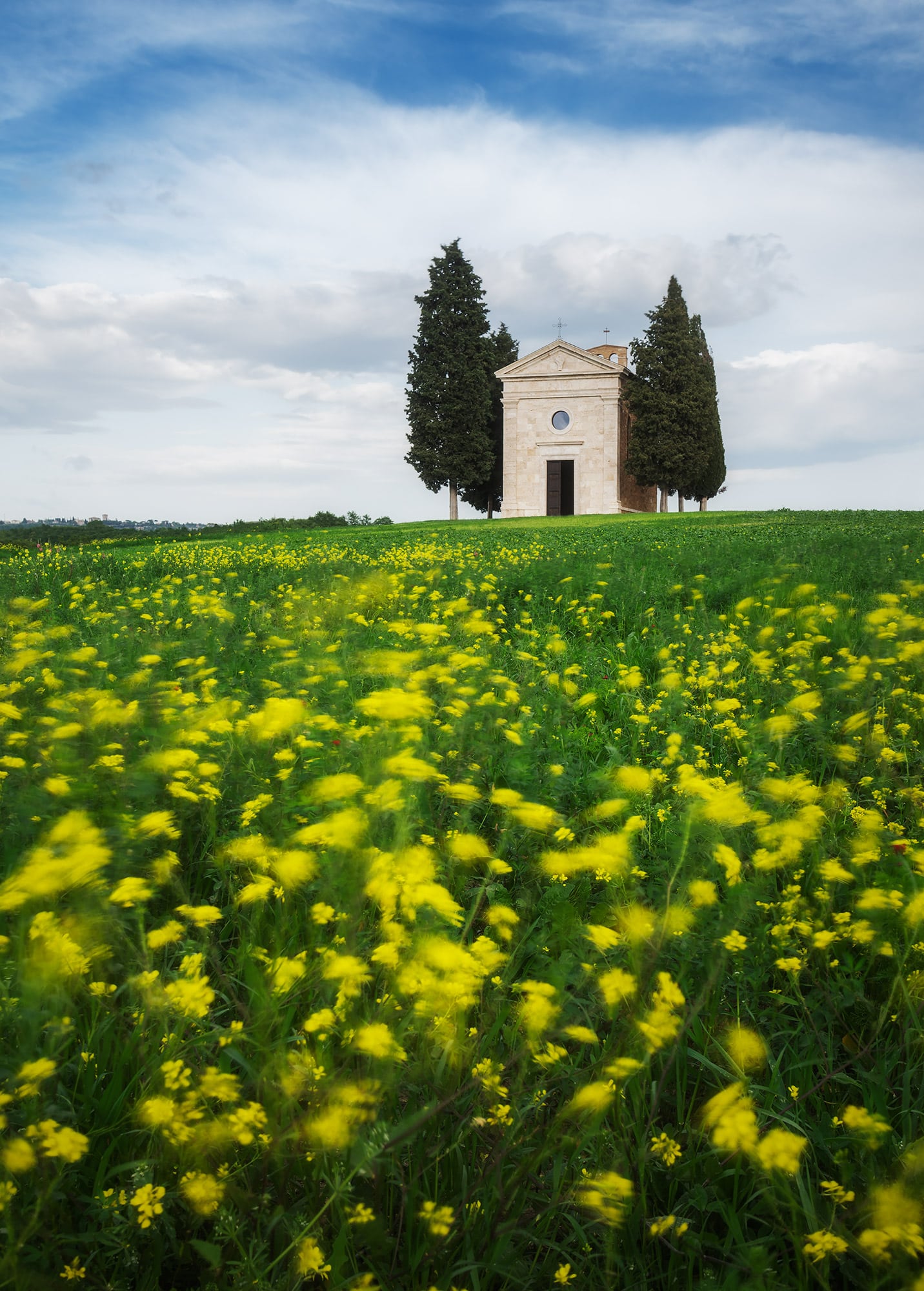 Our last sunset together: time flies! Depending on the conditions, we might visit the Chapel of Vitaleta (yes, the one we shot from far away a couple mornings back) and shoot it from up close, as you can see from the images down here!