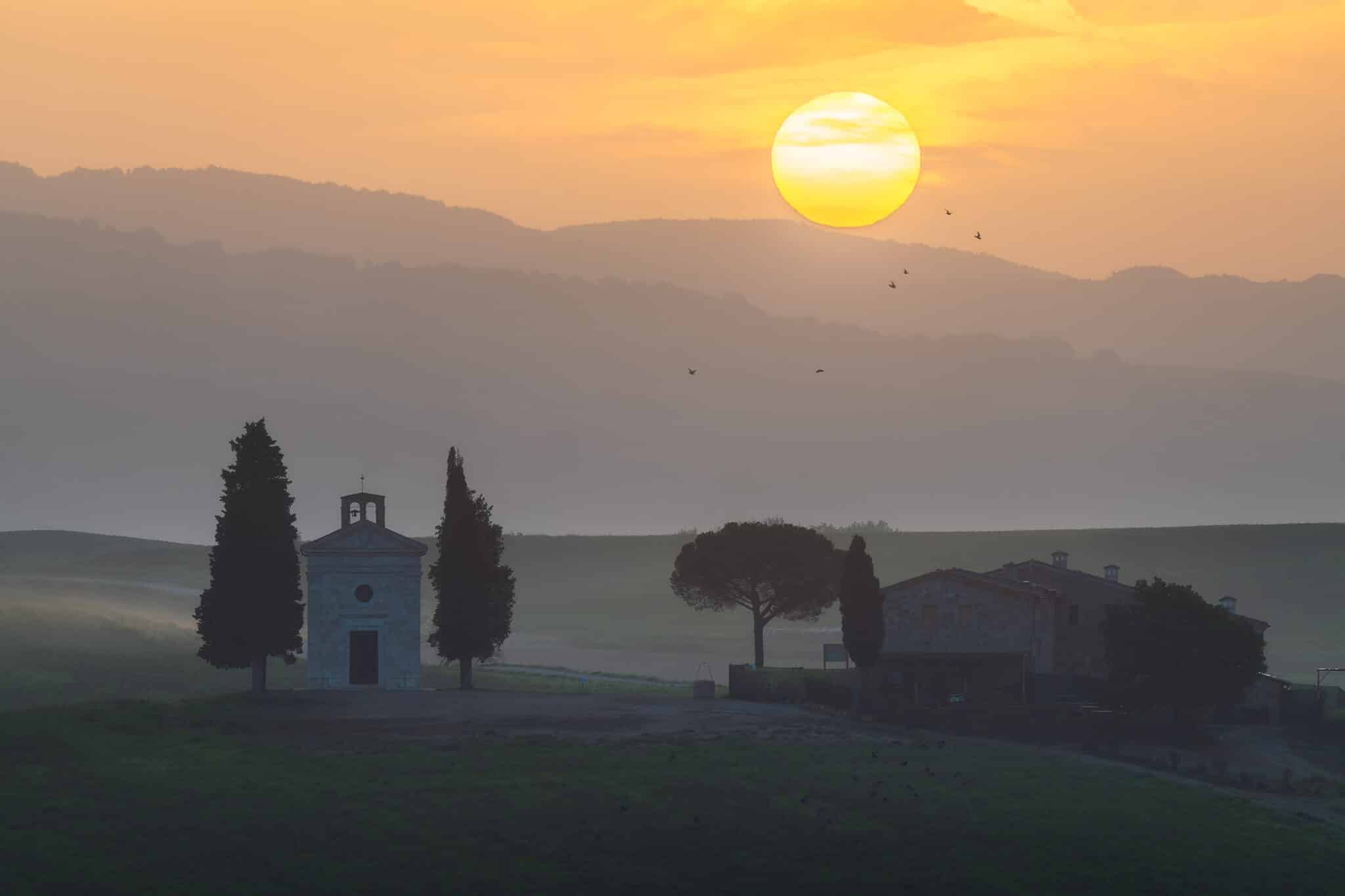 On our third sunrise we will cover one of the most unique spots of the area: the incredibly photogenic Chapel of Vitaleta – a small church built on top of a hill in the countryside.