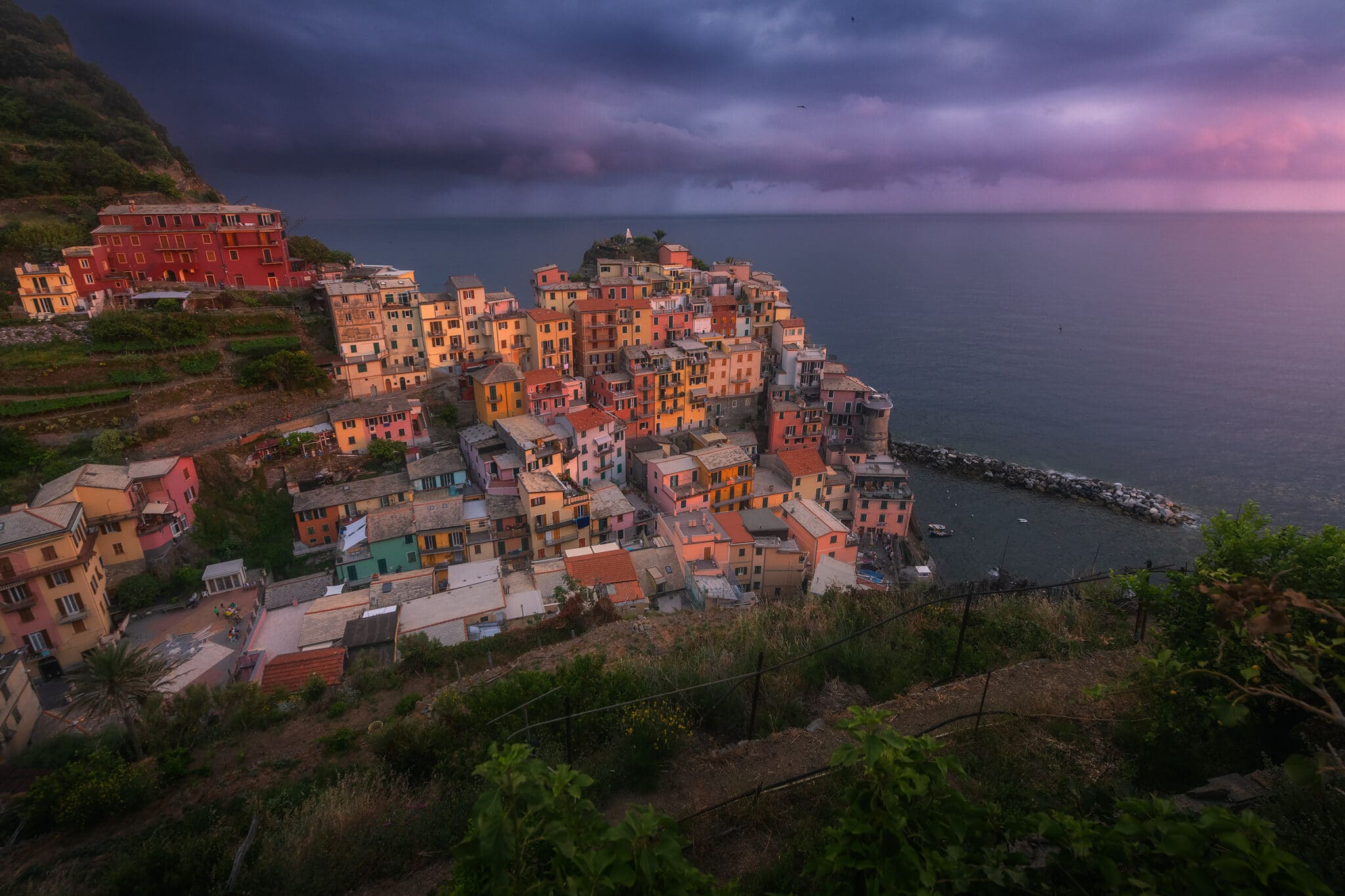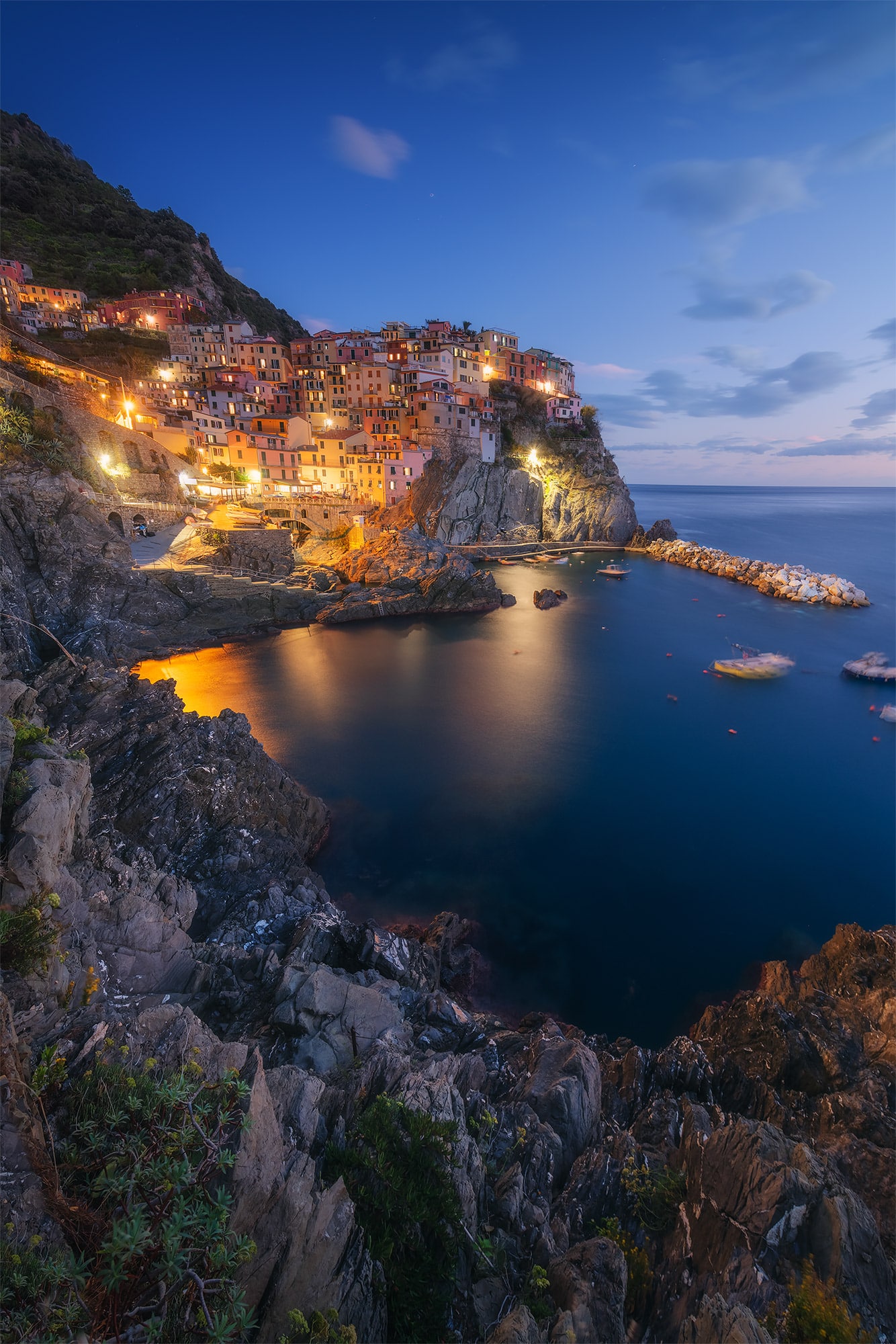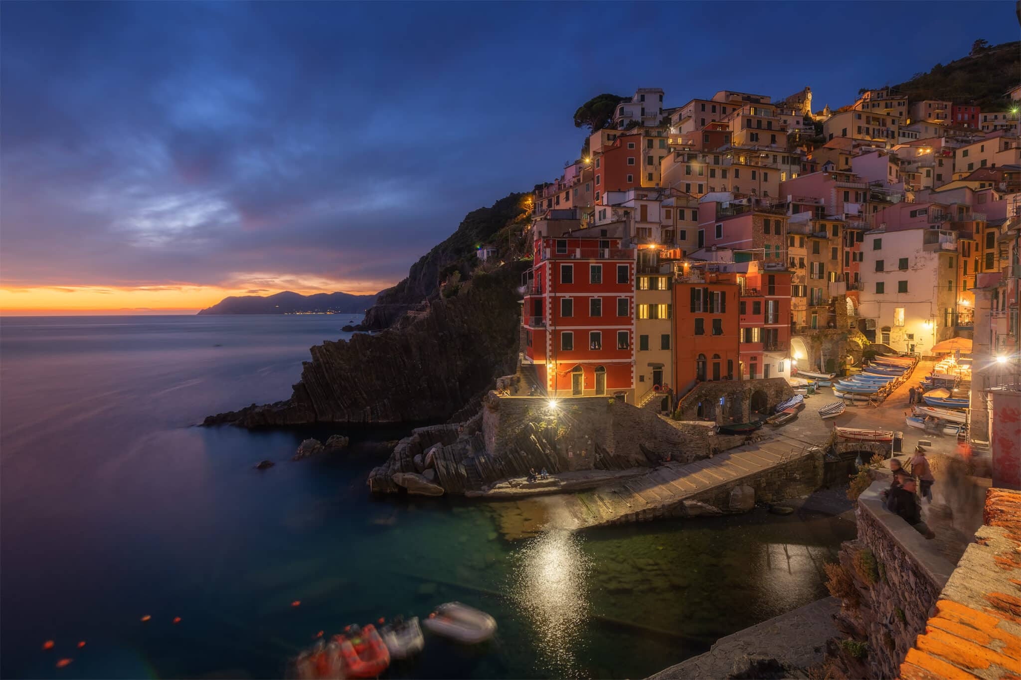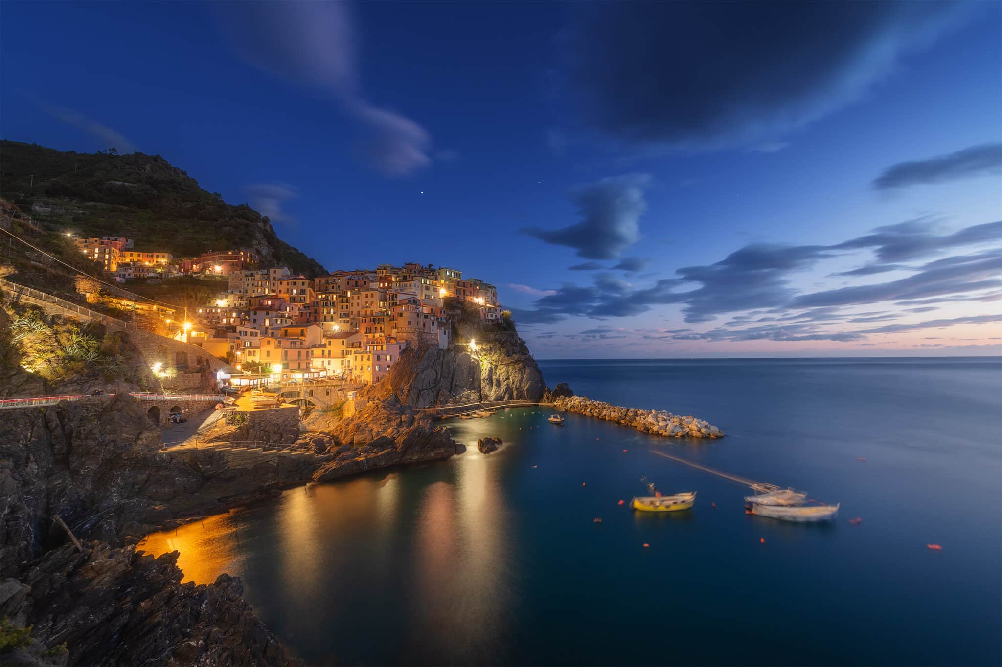 On our first sunset in Cinque Terre – we will shoot the town that we are actually staying in: Manarola! Arguably the most picturesque and beautiful of the five villages – all we will have to do is walk down to the marina and wait for the magic to happen. We will stay till the blue hour to capture the moment when they turn on the city lights!