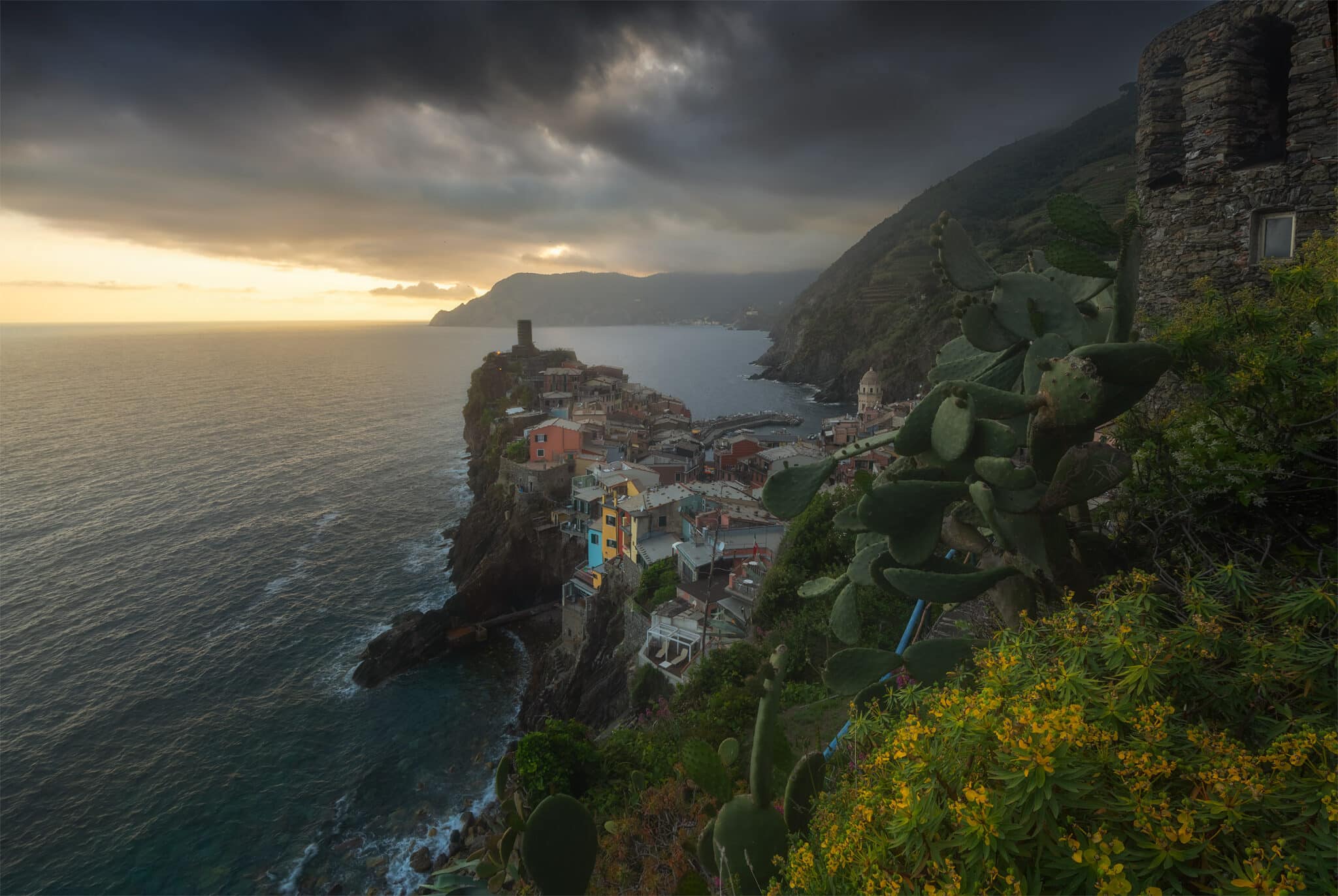 On our first sunrise in Cinque Terre, we will visit Vernazza by taking an early morning train; this village is probably the one that offers more perspectives amongst all of the Cinque Terre – as we will be able to shoot it from the marina as well as from the surrounding hills.