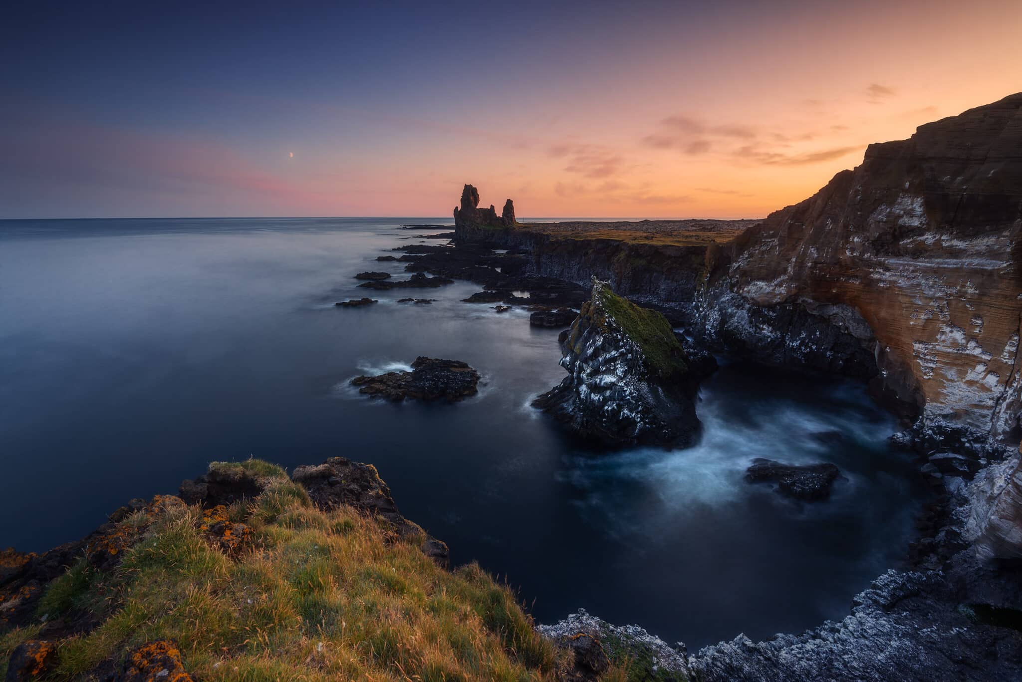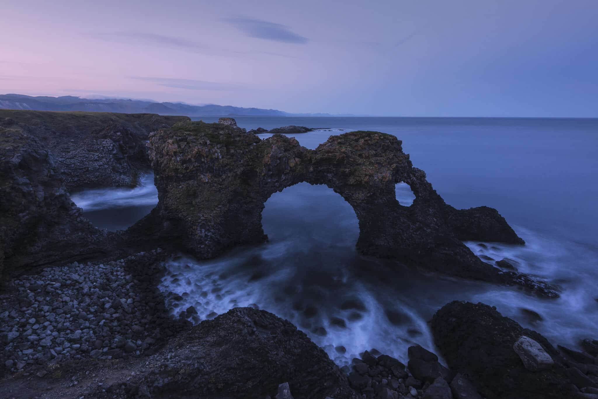Today we will focus on the southern coast of the Snaefellsness peninsula: our two main locations will be the Londrangar Sea Stacks and the Arnarstapi cliffs. Both of these locations offer several different points of view and another chance to do some long exposures!