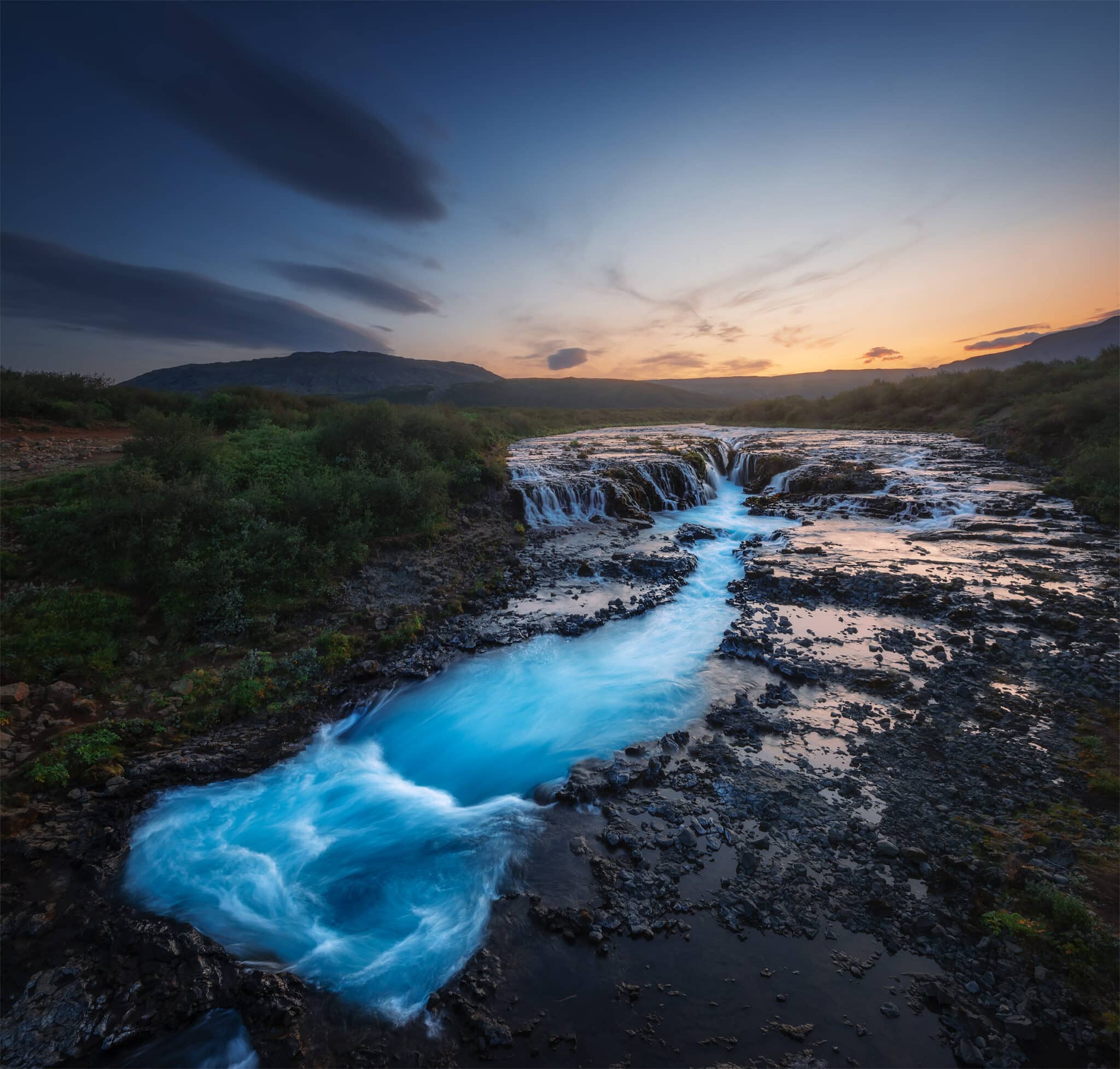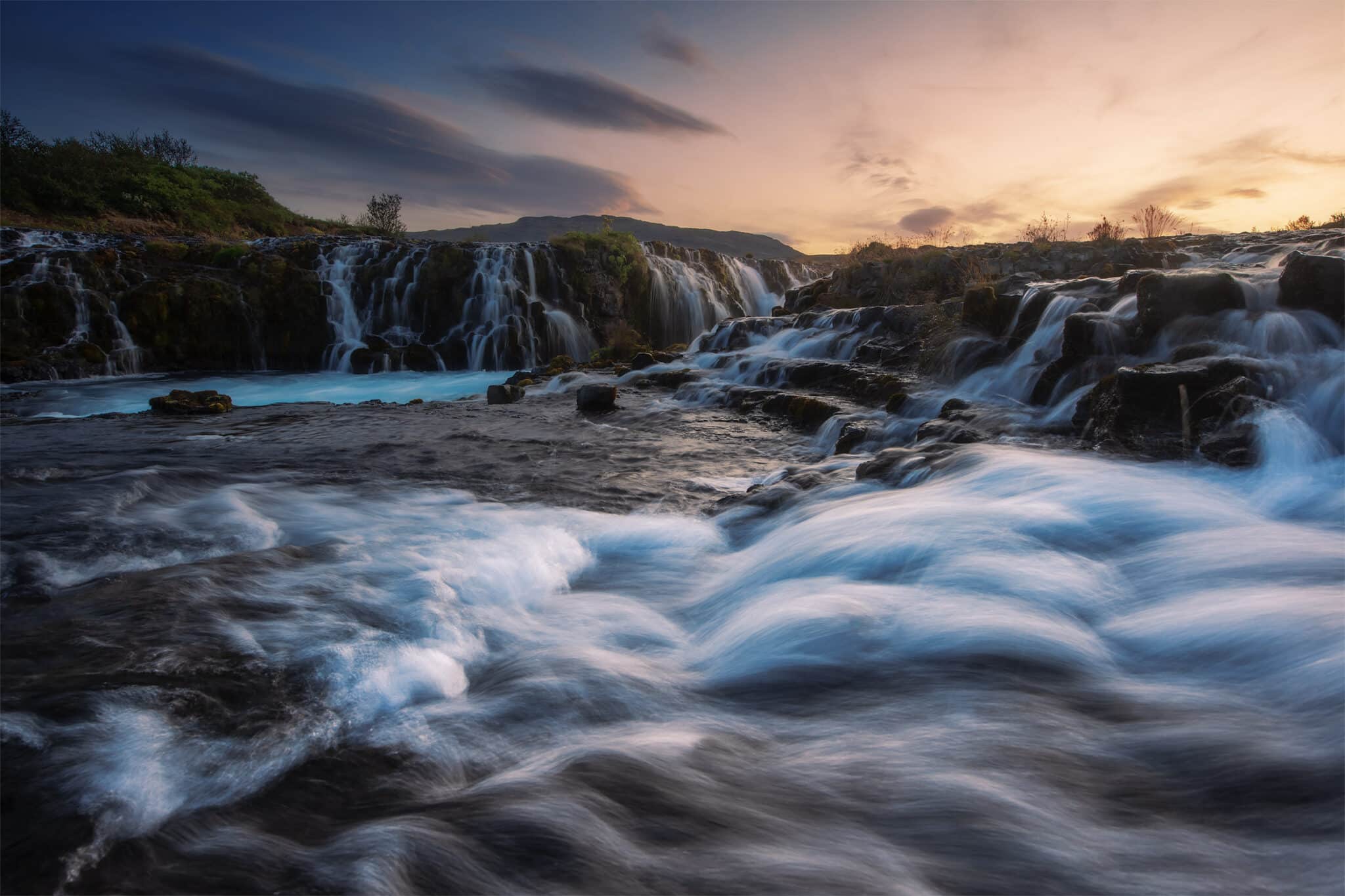 As beautiful as the locations I mentioned above (Geysir and Gullfoss) are, those won’t be our main subject for our last photography session. We will spend tonight shooting the gorgeous Bruarfoss, with its turquoise waters! This waterfall is much smaller than Gullfoss, but it’s a much prettier and more photogenic location and one that is definitely less crowded than the major attractions of the area.