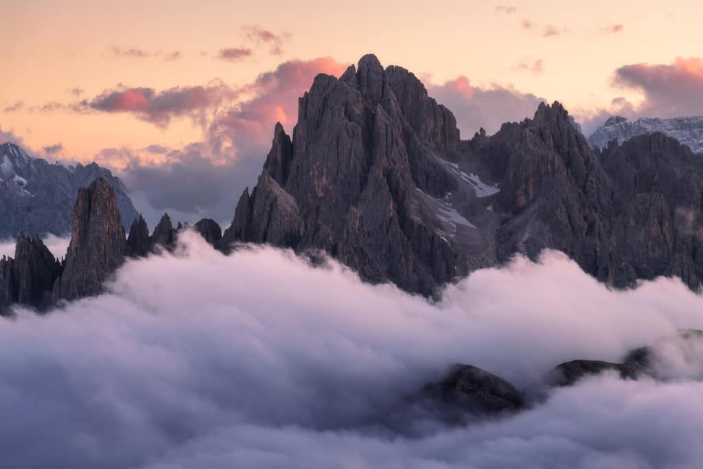 – Telephoto lens: here it comes the big “if”. If you looked on some photographic websites for Dolomites shots, you probably saw that a lot of them are close-up of mountain peaks, taken during some dramatic light conditions. And yes, those shots are beautiful. For example, the photo that you can see up here under the “Lenses” title is made at 500mm; it was taken during a cold April morning, and sunrise wasn’t that great with no clouds in the sky except for a few really far, really low on the horizon. I decided to switch from the wide angle lens to the telephoto to zoom in a lot and that’s the result! It feels like a storm was raging all over the place with those dark clouds, while the truth is that it was a sunny morning.