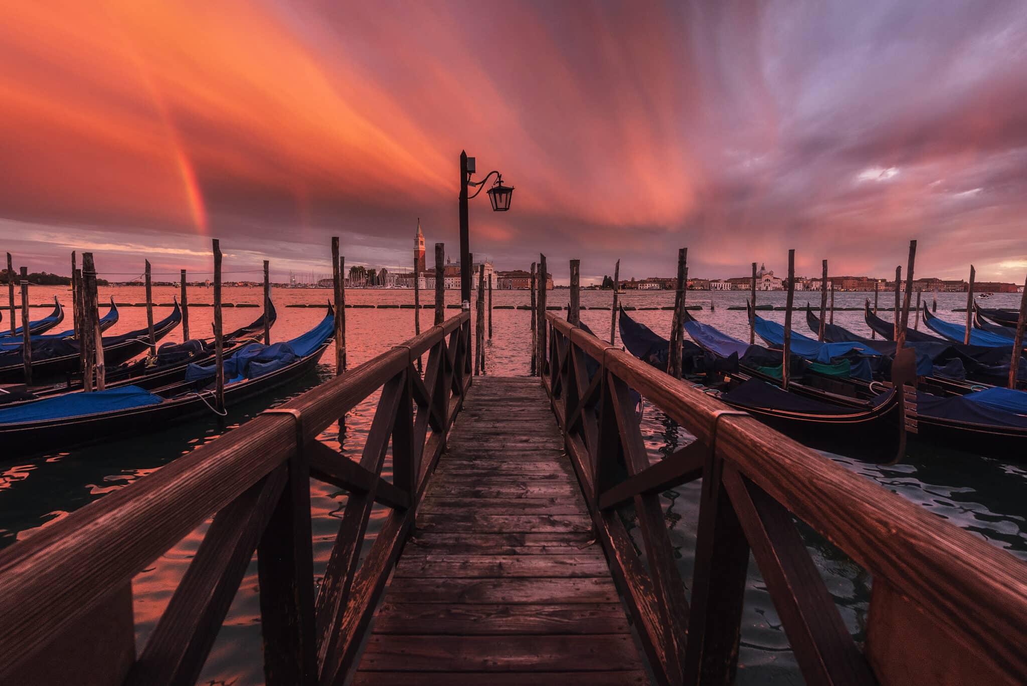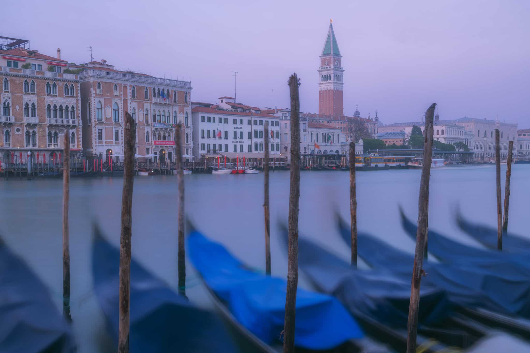 Here we are: let’s start our first photography session together! During our first sunset we will visit the amazing Riva degli Schiavoni, one of the most iconic views of Venice just out of St. Mark Square: we will find endless different compositions along the shore – playing with several different subjects such as gondolas, churches and small wooden piers. An amazing location for long exposures too! See the images down here for reference.